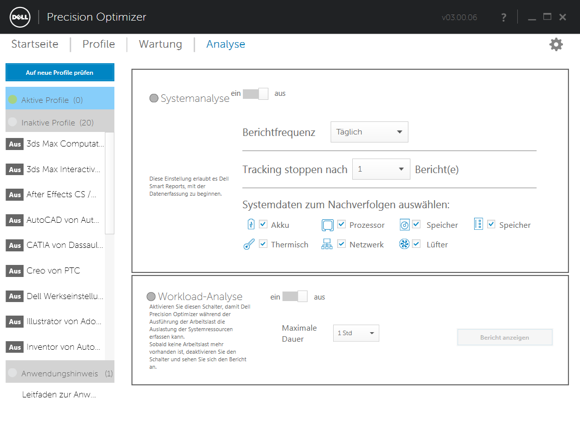 Mit dem Dell Precision Optimizer bietet Dell ein Tool, das je nach Anwendung gezielt optimierte Hardware-Konfigurationen lädt und somit die für jede Software optimale Einstellung automatisiert bereitstellt. Das geht soweit, dass selbst BIOS-Funktionen über das jeweilige Profil geändert werden können. Darüber hinaus bietet das Werkzeug Möglichkeiten zur Client-Betreuung, zur Systemwartung, für Analysezwecke und zur Problemberichterstellung. Im unternehmerischen Umfeld mit verschiedenartig genutzten Programmen und vielfältiger Gerätelandschaft könnten die gebotenen Eigenschaften eine erhebliche Arbeitserleichterung bedeuten.