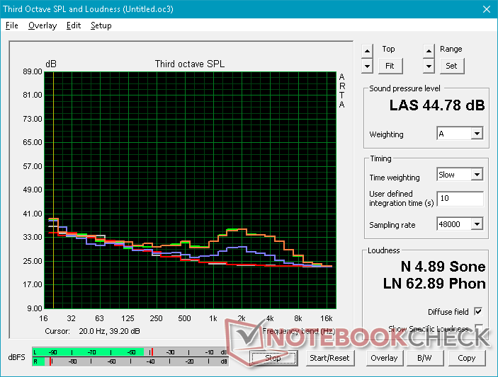 Die Lüftergeräusche entsprachen trotz der unterschiedlichen Hardware im Großen und Ganzen denen des Precision 5530. Beide Lüfter sind im Leerlauf ausgeschaltet und drehen bei niedriger Last nur ganz leicht hoch. Leider erreichen sie dabei recht schnell einen Schalldruckpegel von 40 dB(A) und mehr. Beim Spielen oder vergleichbar hoher Auslastung muss man also mit einem ziemlich lauten Arbeitsgerät rechnen.