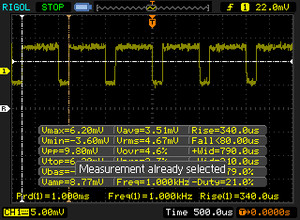 | PWM Frequency (Hz) | 1000 | 980 | 1053 ? | 20830 ? | 1351 ? | 117000 ? | ||