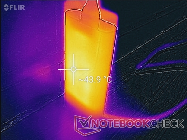 (±) Auf der Unterseite messen wir eine maximalen Wert von 44 °C (im Vergleich zum Durchschnitt von 41.1 °C).
