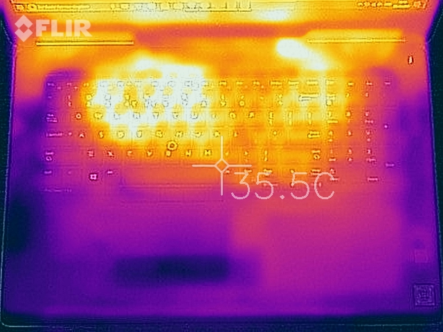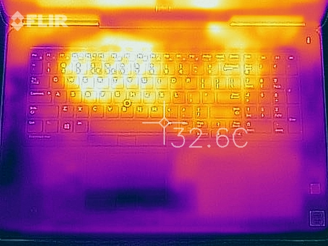 (+) Die Handballen und der Touchpad-Bereich sind mit gemessenen 27.3 °C kühler als die typische Hauttemperatur und fühlen sich dadurch kühl an.