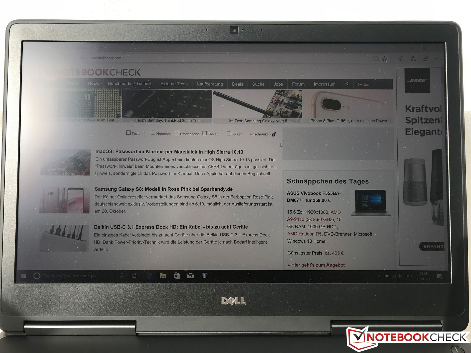 Ab Werk sind die Delta-E-2000-Abweichungen nicht besonders gut, gerade in Anbetracht des Aufpreises und der Leistungen der beiden Konkurrenten von HP sowie Lenovo. Keine der Voreinstellungen schafft es, durchschnittliche Werte von weniger als 3 zu erreichen. Diese Grenze ist wichtig, da das menschliche Auge ab diesem Wert keinen Unterschied zur Referenzfarbe mehr sehen kann. Das gilt aber für alle der getesteten Profile, gerade im Vergleich zu dem sRGB-Farbraum gibt es doch deutliche Abweichungen. Man sollte das Panel nach Möglichkeit also kalibrieren. Subjektiv erkennt man ebenfalls einen Unterschied zwischen den Profilen. Am besten hat uns das voreingestellte Profil "Brillanz" gefallen, dicht gefolgt von "Foto". Bei "Internet" wirken die Farben deutlich weniger lebendig, was vor allem beim Betrachten von Bildern oder Videos auffällt.