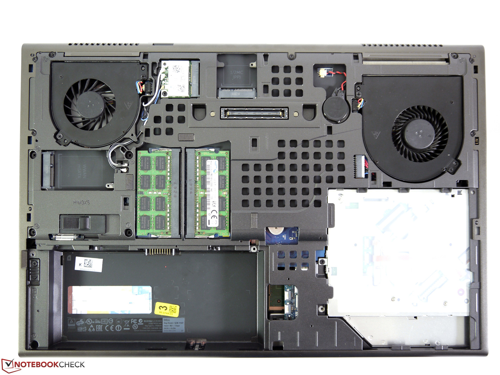 Im Wartungsbereich kann Dell wie gehabt voll auftrumpfen. Lediglich der Akku und zwei Schrauben müssen entfernt werden, um die Bodenplatte lösen zu können. Alle Komponenten sind dann schnell und einfach erreichbar und austauschbar. Einzelne Arbeitsschritte werden ausführlich im Owners Manual dargestellt. Die beiden Lüfter können gereinigt und im Bedarfsfall auch komfortabel ausgetauscht werden. Zwei zusätzliche RAM-Steckplätze befinden sich bei den Quadcore-Modellen unter der Tastatur.