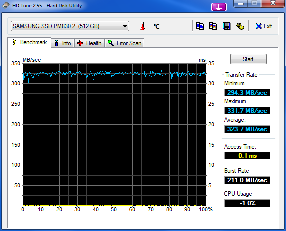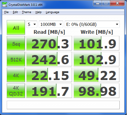 Im Bereich des Massenspeichers gibt es dank zweier Festplattenschächte und einem zusätzlichen mSATA-Steckplatz umfangreiche Konfigurationsmöglichkeiten, die einem beim Speicherplatzausbau freie Hand lassen. Verschiedene RAID-Konfigurationen sind genauso möglich wie SSD-Festplattenkombinationen oder eine reine SSD-Bestückung. Unser Testmodell ist mit einer Samsung P830 Solid State Disk ausgestattet, die eine sehr hohe Speicherkapazität von 512 GB (brutto) aufweist. Der Aufpreis für ein 512-GB-SSD kostet im Online-Shop beim Basismodell derzeit 943 Euro netto. Der mSATA Steckplatz ist im Handbuch mit SATA-II-Geschwindigkeit gekennzeichnet und liefert auch nur diese in unserem Praxistest mit einem Crucial M4 mSATA-SSD, welches bei 270 MB/s (lesen) limitiert wird (Am SATA-III-Port sind knapp 500 MB/s möglich). Rein leistungstechnisch gibt es an dem verbauten Festspeicherlaufwerk von Samsung nichts auszusetzen, lediglich der aktuelle Preis kann negatives Herzrasen erzeugen.