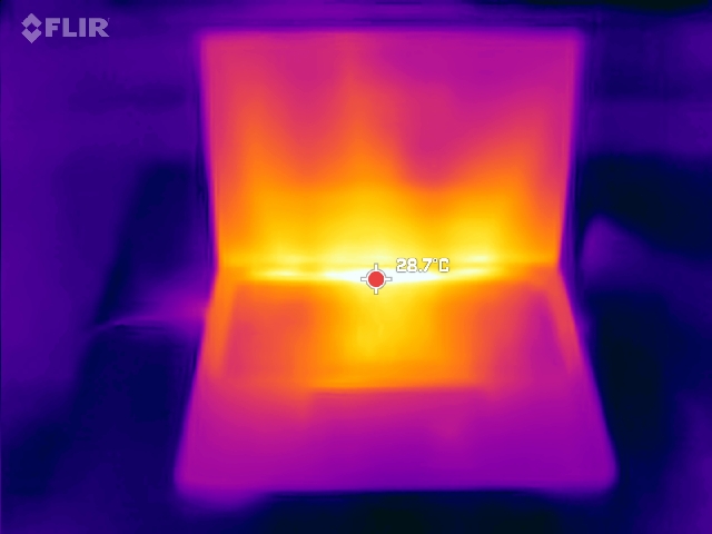 (+) 3: The average temperature for the upper side is 28.8 °C / 84 F, compared to the average of 30.8 °C / 87 F for the class Subnotebook.