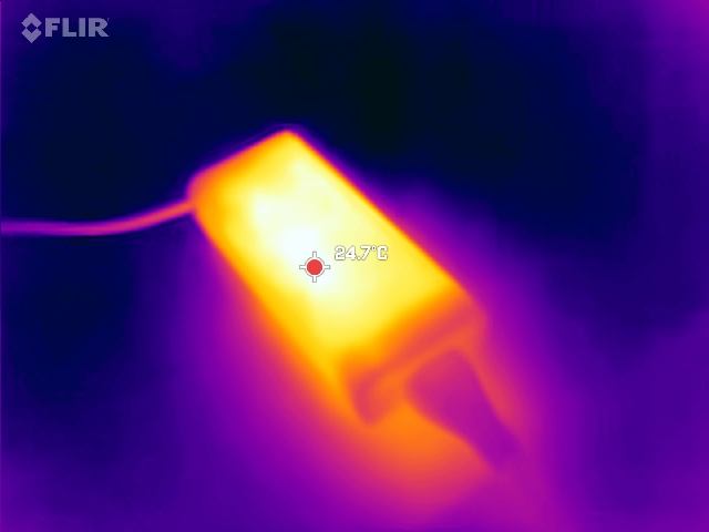 (+) Ohne Last messen wir eine durchschnittliche Temperatur von 22.3 °C auf der Oberseite. Der Klassendurchschnitt erreicht 30.8 °C.