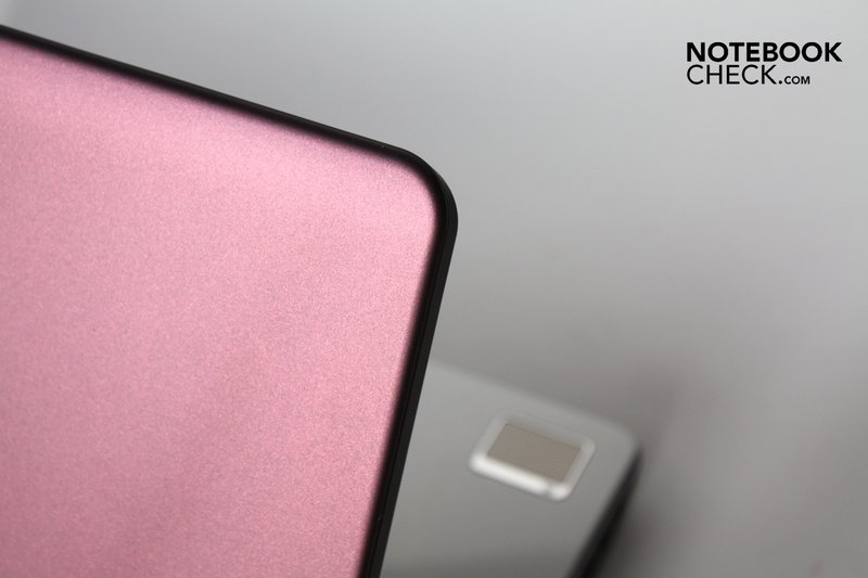 In der Standardkonfiguration ist der Deckel schwarz mit einem leichten Muster, weiterhin sind fünf knalligere Farben, Rosa, Rot, Blau, Violett und Grün, erhältlich. Alle diese farbigen Varianten sind mit einer Micro-Satin-Oberfläche ausgestattet, die sich wie eine Mischung aus Gummi und Stoff und recht angenehm anfühlt. In der Mitte sitzt ein verchromtes Dell-Logo aus Metall.