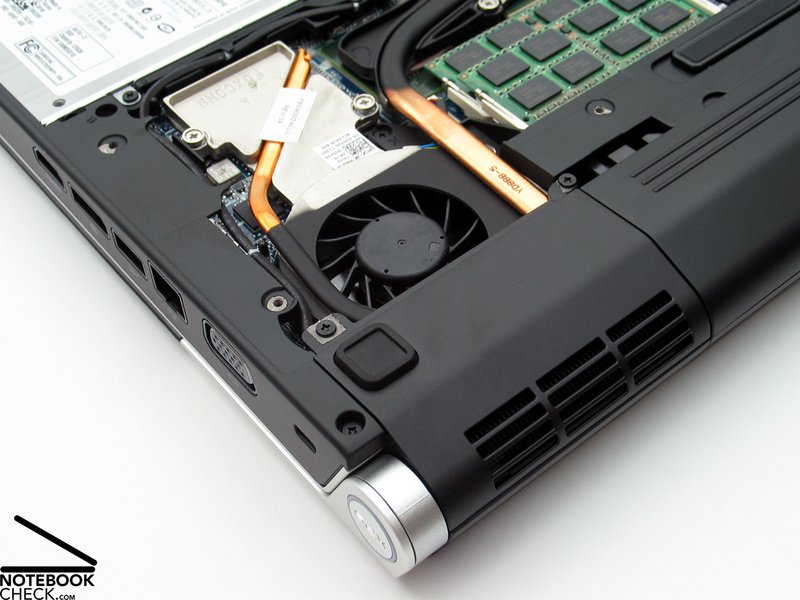 Erst nach rund 80 Minuten in diesem Betriebszustand bei einer Raumtemperatur von überaus warmen 23°C, schaltete sich der Lüfter hinzu und lief für einige Minuten um daraufhin wieder für eine Weile zu verstummen. Zu diesem Zeitpunkt konnten an der Gehäuseoberfläche durchaus nennenswerte Erwärmungen festgestellt werden. Die maximal gemessene Temperatur an der Oberseite belief sich etwa auf 41.9 °C bzw. an der Unterseite des Notebooks auf stolze 42.8 °C.