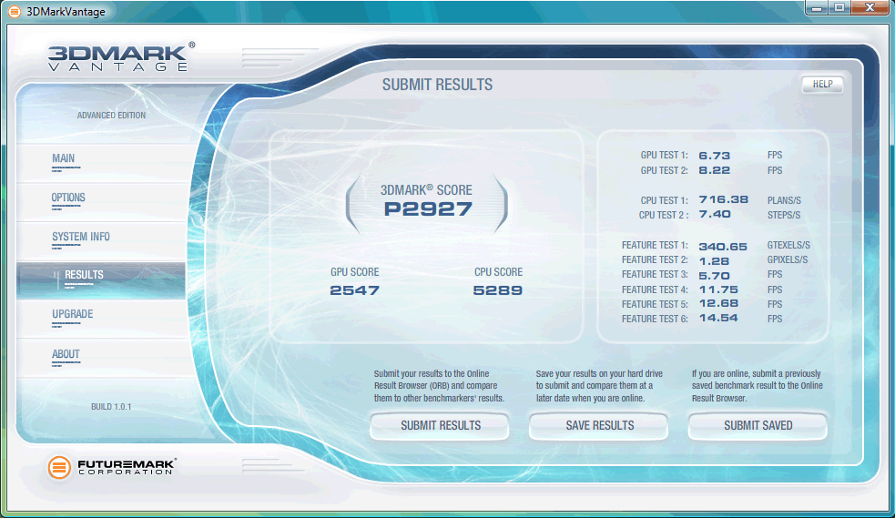 | 3DMark Vantage P Result | 2947 Punkte | |