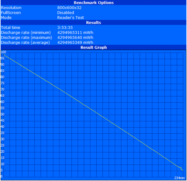 Im Worst case Szenario, also unter Last bei maximaler Displayhelligkeit, aktivierten Kommunikationsmodulen und dem Energieprofil Höchstleistung, erreichte das Dell Studio XPS 16 im BatteryEater Classic Test 94 Minuten Laufzeit. Die Grenze nach oben markiert wie immer unser BatteryEater Readers Test bei maximalen Energiesparoptionen (min. Displayhelligkeit, WLAN und BT aus, Energiesparprofil). Die erreichte Laufzeit lag hier bei 234 Minuten, also knapp 4 Stunden.