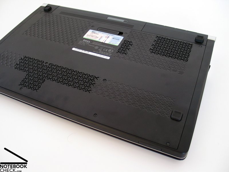 Hinsichtlich Gehäusestabilität ist vor allem die überaus verwindungssteife Baseunit positiv zu erwähnen. Ein Anheben des rund drei Kilogramm schweren Notebooks an der Vorderkante ist ohne erkennbare Verformungen, geschweige denn Knarrgeräusche, möglich. Unter punktueller Druckeinwirkung kann die große Alu-Wartungsklappe an der Unterseite zwar etwas nachgeben, insgesamt bleiben diese Verformungen allerdings im tolerierbaren Bereich. Dies gilt auch im Falle eines Anhebens des Gerätes im Bereich des Slot-In Laufwerkes, wo oftmals eklatante Schwächen bei verschiedenen Geräten festzustellen sind - nicht so beim Studio XPS 16.