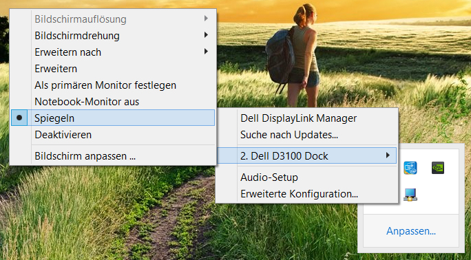 Wer einen Monitor an die Docking-Station anschließt, findet anschließend ein neues Symbol in der Systray. Dieses ermöglicht eine schnelle und einfache Ansteuerung des Monitors.