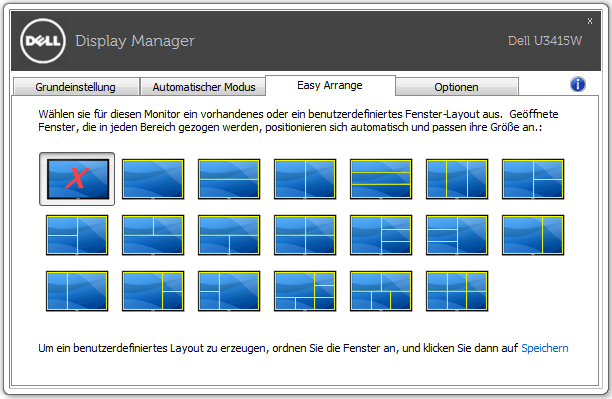 Mittels Dells "Display Manager"-Software lassen sich komfortabel direkt am Desktop eine Reihe von Einstellungen vornehmen. So können etwa Helligkeit und Kontrast angepasst werden, oder aber auch Color-Presets einzelnen Anwendungen zugewiesen werden. Die Option "Easy Arrange" gestattet zudem dem Display ein bestimmtes Fenster-Layout zuzuweisen, in welches dann einzelne Fenster gezogen werden können und dann auch automatisch angepasst werden.