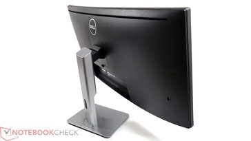 Der mitgelieferte Displayfuß erlaubt ein Höhenanpassung des Monitors von der Displaymitte 22 cm über der Schreibtischoberkante auf rund 33,5 cm. Zudem lässt sich der Monitor 5° nach vorne und 25° nach hinten neigen. Damit ist eine optimale Anpassung auch für großgewachsene User (Autor: 1,87 m) möglich. Seitlich lässt sich das Gerät etwa 30° nach links oder rechts drehen. Auf eine Pivot-Funktion muss man angesichts der enormen Breite des Panels wenig überraschend verzichten. Die Aufnahmehalterung für den mitgelieferten Standfuß ist Vesa 100 kompatibel, womit auch alternative Lösungen genutzt werden können.