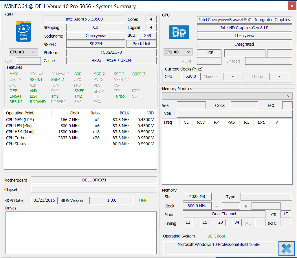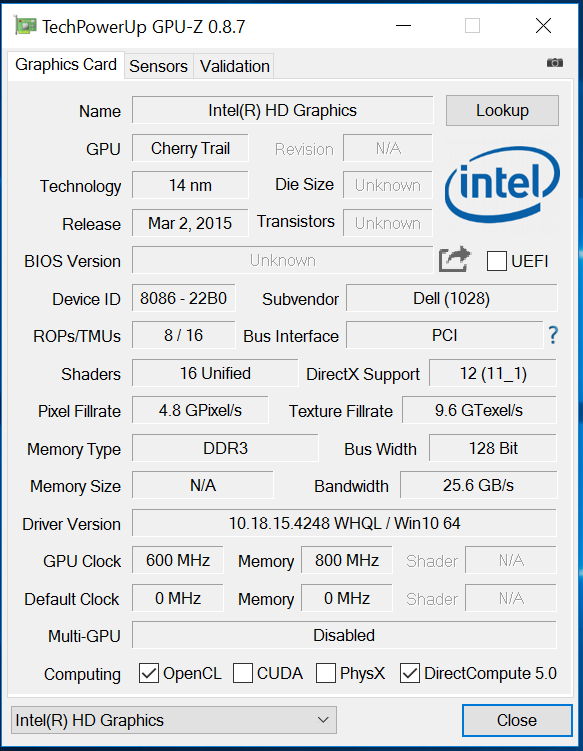 | Dell Venue 10 Pro 5056 Z8500, HD Graphics (Cherry Trail) | Dell Venue 10 Pro 5055 Z3735F, HD Graphics (Bay Trail) | HP Pro Tablet 10 EE G1 Z3735F, HD Graphics (Bay Trail) | Apple iPad Air 2 2014 A8X, PowerVR GXA6850 | Google Pixel C X1, Tegra X1 Maxwell GPU | Lenovo Thinkpad Tablet 10 2nd Gen Z8700, HD Graphics (Cherry Trail) | Amazon Fire HD 10 inch 2015 MT8135, PowerVR G6200 | Asus Transformer Book T100HA-C4-GR Z8500, HD Graphics (Cherry Trail) | Samsung Galaxy Tab S2 9.7 LTE Exynos 5433, Mali-T760 MP6 | Samsung Galaxy Tab A 9.7 SM-T555 410 APQ8016, Adreno 306 | |