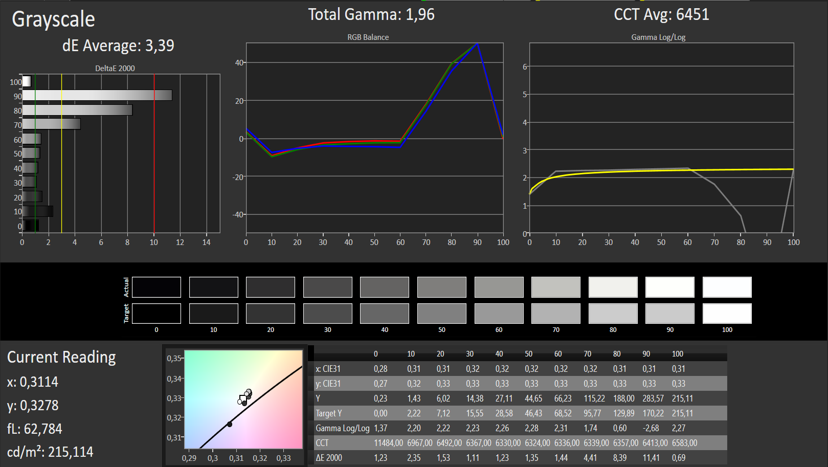 ΔE Greyscale Calman: 3.39 | ∀{0.09-98 Ø5}