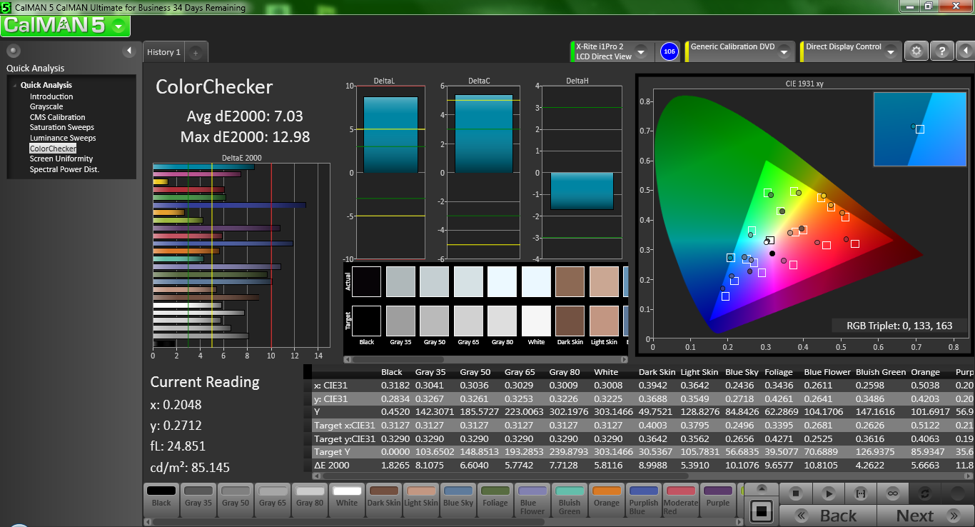 ΔE ColorChecker Calman: 7.03 | ∀{0.5-29.43 Ø4.78}