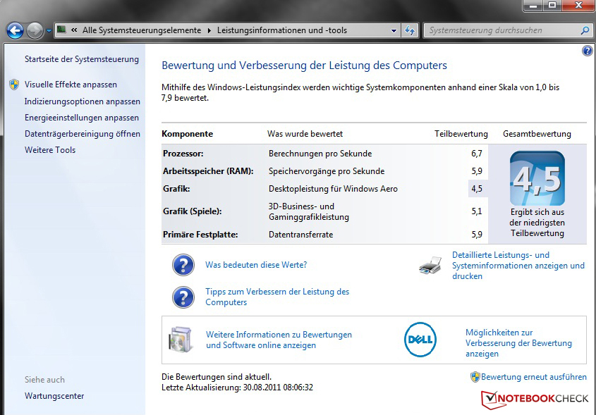 Die komponentenübergreifenden Systembenchmarks PCMark Vantage und PCMark 7 bestätigen ein Leistungsbild aus dem unteren Mittelfeld ohne große Leistungsreserven. Für einfache Office-Anwendungen ist die gebotene Performance aber mehr als ausreichend.