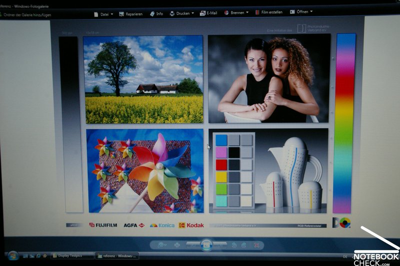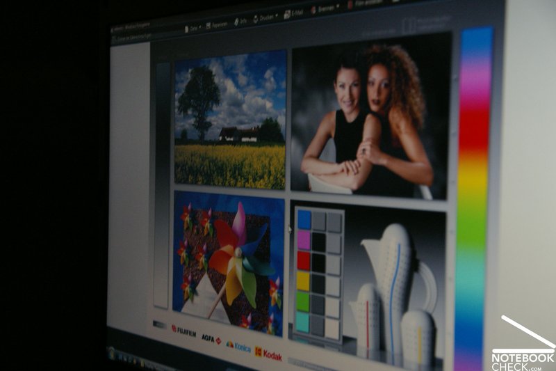 Was die Blickwinkeleigenschaften betrifft, so kann man beim Vostro 1710 recht zufrieden sein. Die Schwächen des kleineren Vostro 1310 konnten wir hier nicht feststellen. Sowohl im horizontalen als auch im vertikalen Bereich machte das verbaute Display eine recht gute und brauchbare Figur und lässt nur wenig Raum für Kritik. Einziger Kritikpunkt wären hier die dargestellten Farben zu erwähnen, die beinahe etwas fahl und dünn wirkten. Dies könnte aber mit dem matten Display zusammenhängen, welches laut Dell, mit einer speziellen reflexionsarmen Beschichtung präpariert wurde.