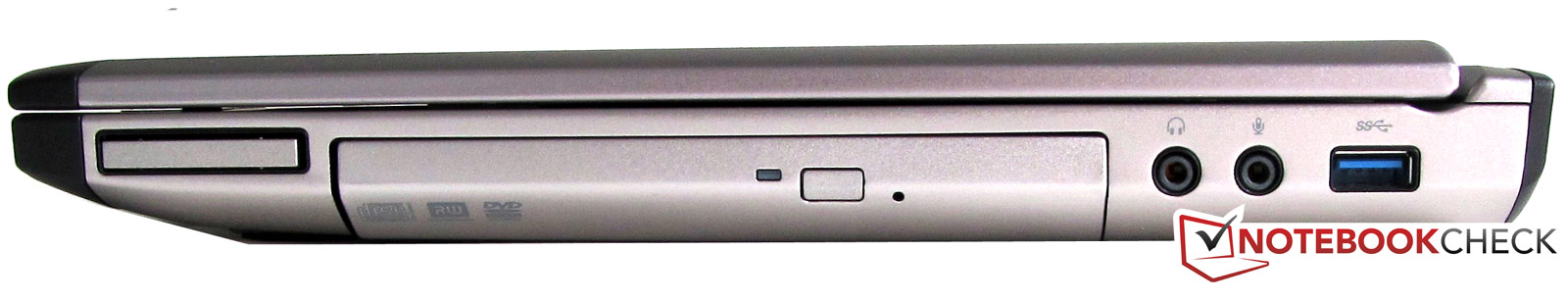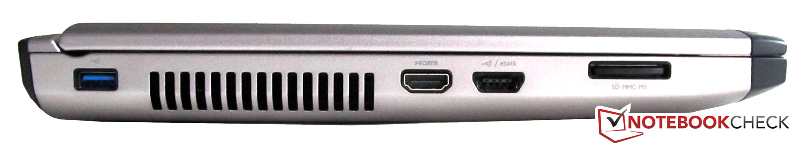 Auf der Vorderseite des Notebooks befinden sich keine Schnittstellen. Unter dem Notebook gibt es keinen Anschluss für eine Dockingstation.