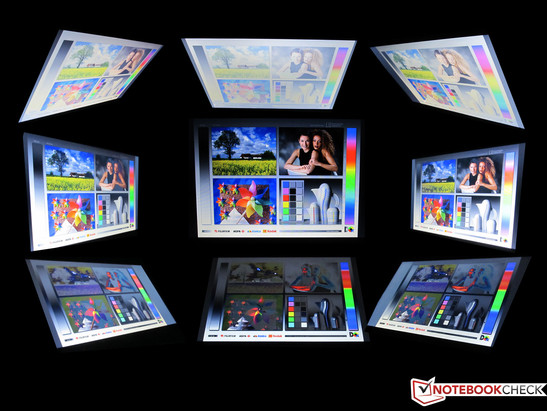 Bei einem Neigungswinkel von +45 Grad beziehungsweise -45 Grad ist der Bildschirminhalt nicht mehr erkennbar. Das Bild ist in dieser Position des Displays zu sehr invertiert beziehungsweise aufgehellt, sodass es fast unmöglich für uns war, etwas vom Inhalt zu erkennen.