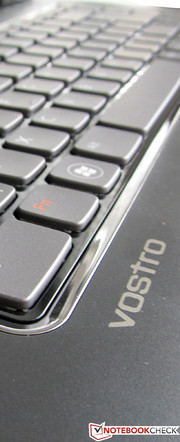 Die Tastatur ist mit der vom Vostro 3550 identisch und besitzt ebenfalls die zuschaltbare Hintergrundbeleuchtung, die insbesondere in dunklen Umgebungen für eine gute Ablesbarkeit der Tasten sorgt.