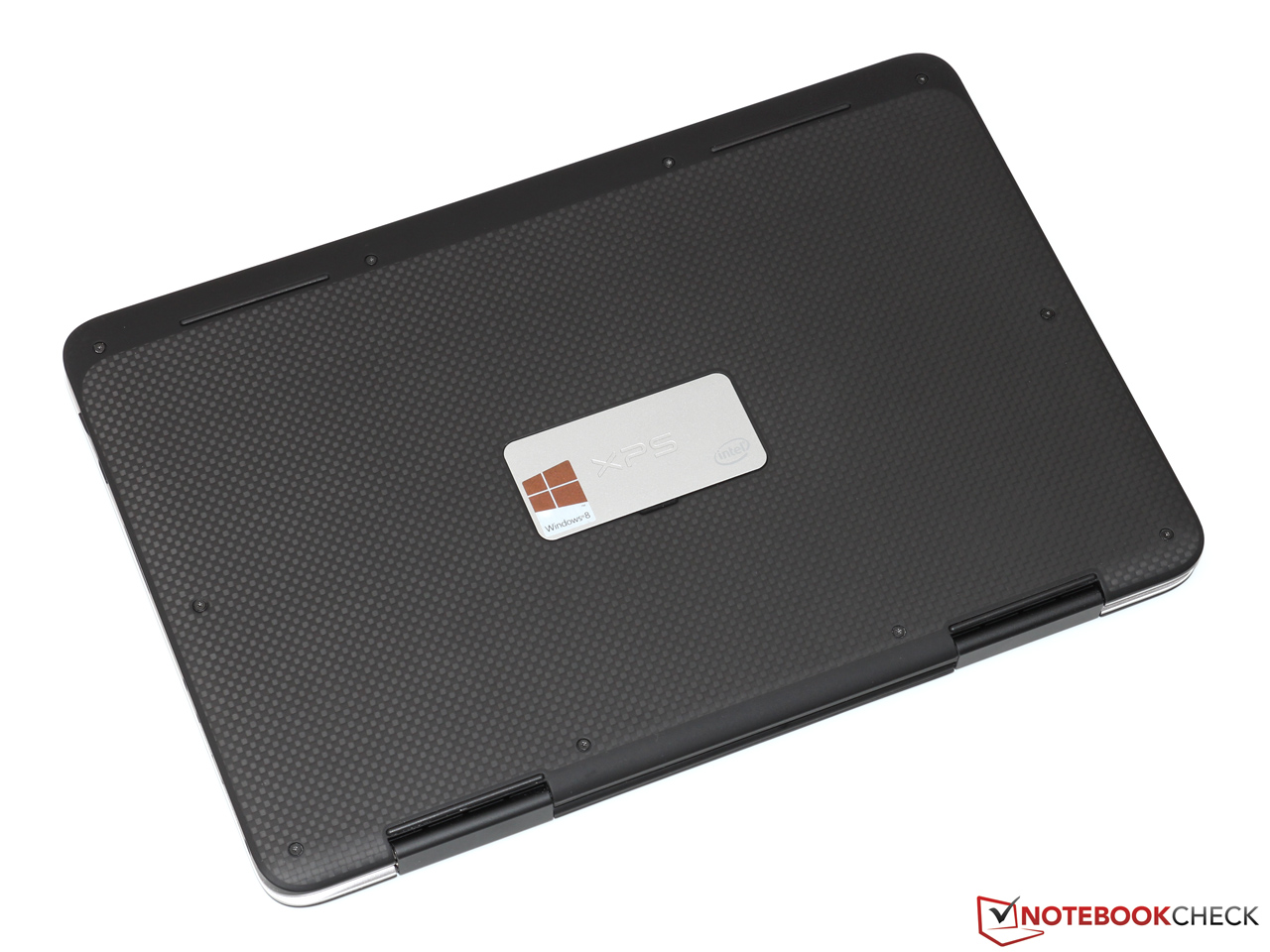 Trotz der insgesamt sehr zierlichen Bauweise widersteht das Notebook bravourös sowohl punktuellen Belastungen als auch Verwindungsversuchen. Dies gilt, mit leichten Abstrichen, ebenso für das nur etwa 3 Millimeter dünne Display. Ähnlich wie bei Lenovos IdeaPad Yoga 11S kann dieses um volle 360 Grad bewegt werden – flach auf die Unterseite der Basiseinheit geklappt, verwandelt sich das XPS zum Tablet. Zusätzlich sind aber auch beliebige Zwischenstufen wie der sogenannte Zelt-Modus möglich, die eine ergonomische Bedienung des mit Gorilla Glass überzogenen Touchscreens gestatten. Abzüge gibt es jedoch für das merkliche Nachwippen der Displayscharniere, welches bei energischen Fingereingaben besonders störend auffällt.