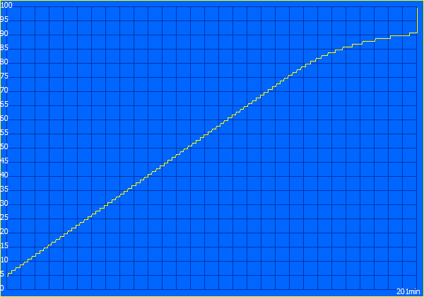 Werden Prozessor und Grafikeinheit im Battery Eater Classic Test (Höchstleistung, maximale Helligkeit, WLAN an) stark beansprucht, geht die Laufzeit auf knapp unter 2 Stunden zurück. Positiv: Auf eine zusätzliche Leistungsdrosselung im Akkubetrieb wurde verzichtet.