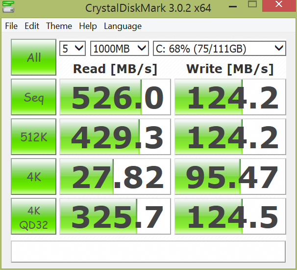 In unserem XPS 13 Non-Touch steckt eine 128 GB große PM851-M.2-SSD von Samsung. Aufgrund der Funktionsweise einer SSD kommen Laufwerke mit kleinen Speicherkapazitäten leistungstechnisch nicht an die größeren Modelle heran. In diesem Fall zeigt AS SSD zwar sehr hohe Transferraten beim Lesen (498 MB/s), allerdings geringe Werte beim Schreiben (120 MB/s) an. Das XPS 13 mit Touchscreen verwendete eine 256 GB große LiteOn SSD mit sequentiellen Transferraten von 485 MB/s (Leserate) und 417 MB/s (Schreibrate). Auch CrystalDiskMark zeigt den gleichen Unterschied beim Lesen und Schreiben an. Obwohl der Unterschied also messbar ist, wollen wir jedoch betonen, dass er sich im Alltag nicht bemerkbar macht. Die geringe Speicherkapazität könnte da schon eher ein Problem darstellen, denn die Leistung von SSDs nimmt ab, wenn das Laufwerk sehr voll wird. Potenzielle Käufer sollten ihre Bedürfnisse abschätzen und sich überlegen, ob eine größere SSD vielleicht die bessere Wahl ist.