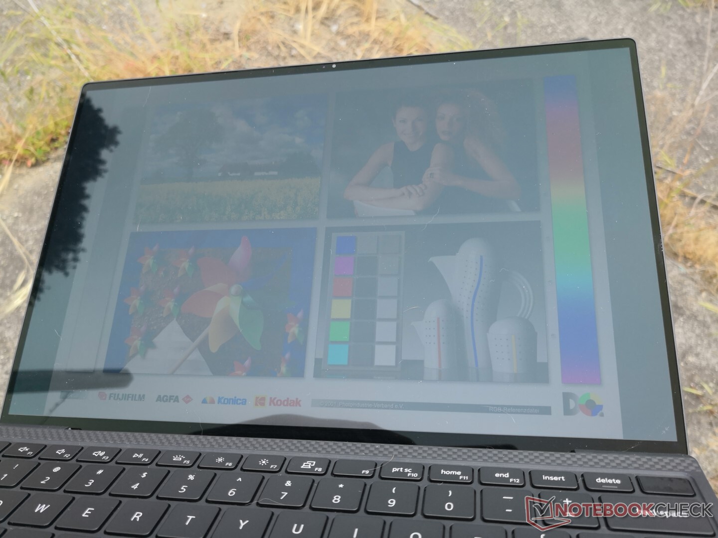 Im Freien ist die Lesbarkeit gut, solange man sich im Schatten aufhält, allerdings ist ein gewisses Maß an Reflexionen unvermeidlich. Um zu verhindern, dass die maximale Helligkeit von 414 cd/m² auf 358 cd/m² fällt, sollte man zudem Intels Displayenergiesparoption deaktivieren. Die Blickwinkel sind ausgezeichnet und beim Betrachten von extrem steilen Winkeln werden der Kontrast und die Farben nur minimal verfälscht. Erwartungsgemäß sinkt dann jedoch die wahrgenommene Helligkeit.