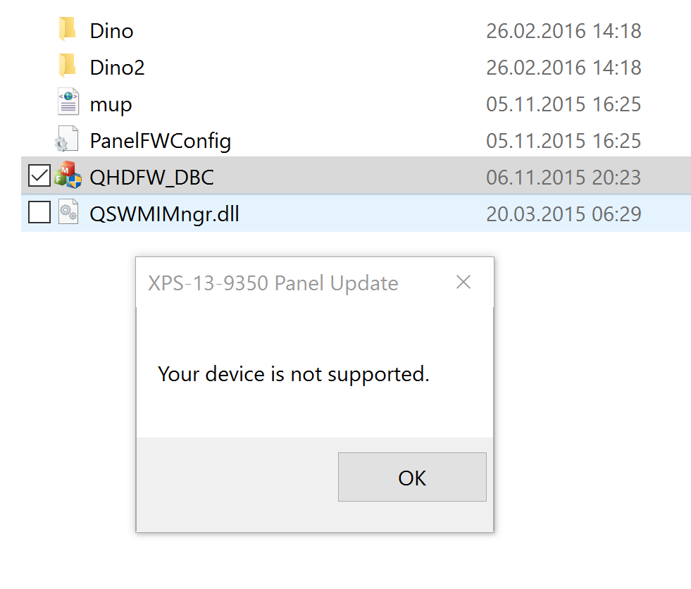 Wir haben uns Dells XPS 13 mit QHD-Infinity-Bildschirm noch einmal hinsichtlich Content Adaptive Backlight Control (CABC) angeschaut. Der Grund: Seit dem 29.12.2015 stellt Dell das „Firmware update utility for DBC Disabled & Enabled“ zur Verfügung. Es ist Kompatibel mit dem XPS 13 9350, allerdings nur für die UHD-Version (Touchpanel). Das Tool frustrierte uns zuerst mit einer Fehlermeldung, im Unterordner Dino konnten wir aber das DP Update Tool starten und den Flash-Speicher der Anzeige aktualisieren. Nach dem Neustart war CABC deaktiviert und wir konnten die PWM-Messung erneut ausführen.