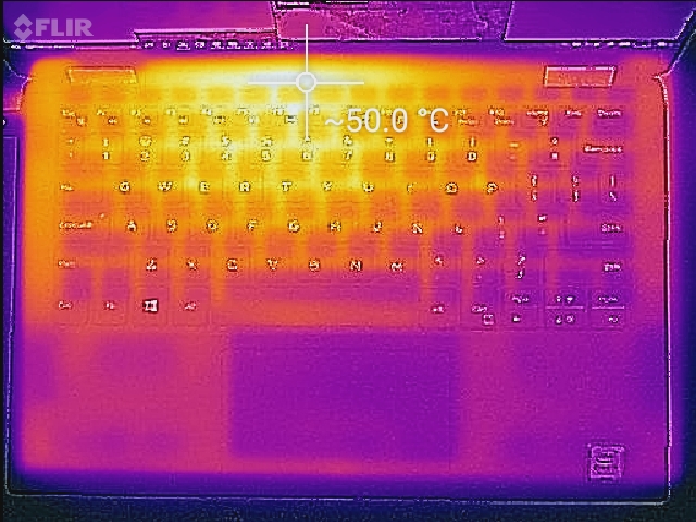 (+) Die Handballen und der Touchpad-Bereich erreichen maximal 32.4 °C und damit die typische Hauttemperatur und fühlen sich daher nicht heiß an.