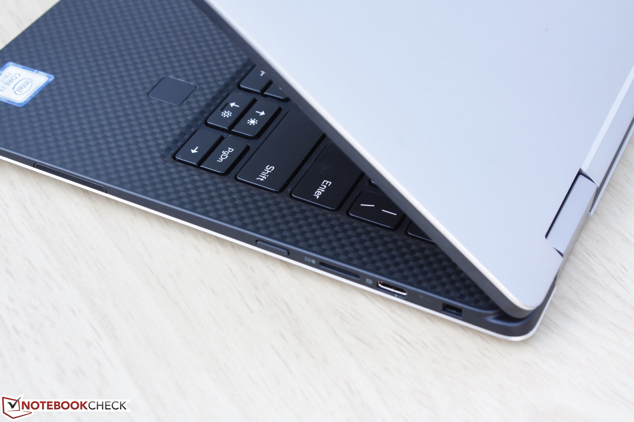 Trotz fast identischem Aussehen gibt es immer noch einige Gründe, das normale XPS 13 in Betracht zu ziehen: Erstens ist das XPS 13 marginal dicker und an Basiseinheit und im zentralen Tastaturbereich fester, ohne schwerer zu sein. Zweitens bietet es sowohl USB Type-A als auch einen deutlich schnelleren SD-Kartenleser. Drittens weisen die Tasten der Tastatur beim XPS 13 ein etwas festeres Feedback auf Druck auf, und das Tippgefühl kommt der ausgezeichneten AccuType Tastaturen bestimmter Lenovo Notebooks näher.