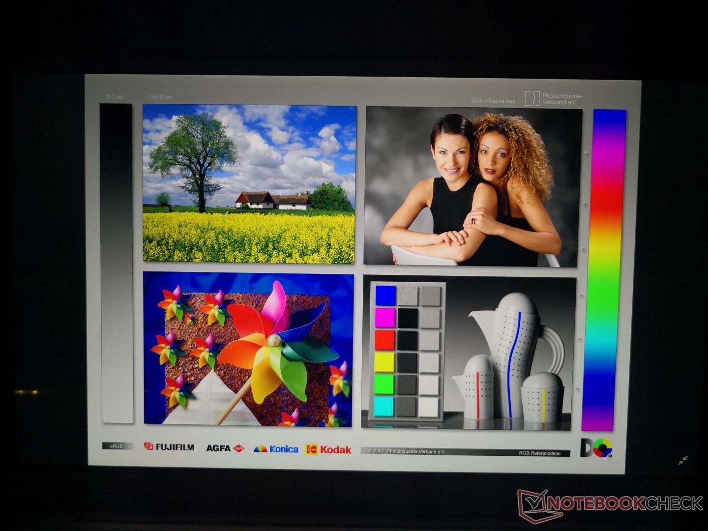 Der 4K-UHD-Touchscreen unseres Testgeräts entspricht dem des i5-Modells. Es handelt sich also um dasselbe hochwertige AU Optronics 282B B133ZAN IPS-Panel, unser Urteil darüber hat also unverändert Bestand. Dell verspricht eine vollständige Abdeckung des sRGB-Farbraums, ein hohes Kontrastverhältnis von 1.500:1 und eine Hintergrundbeleuchtung von 400 cd/m2. Unsere Messungen bestätigen diese Angaben mehr oder weniger, wenngleich die Farbraumabdeckung näher an 95% als an 100% lag.