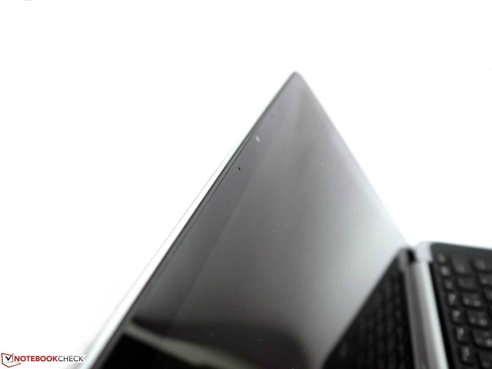 Im Außenbereich hat man bereits an bewölkten Tagen, je nach Display-Position, selbst mit voller Helligkeit und hellen Bildinhalten Schwierigkeiten, entspannt zu arbeiten. Das liegt zum einen an der im Akkubetrieb auf 200 cd/m² reduzierten maximalen Helligkeit und wiederum an der stark spiegelnden Gorilla-Glas-Oberfläche. Die reduzierte Helligkeit lässt sich weder im Bios noch in den Energieeinstellungen abändern.