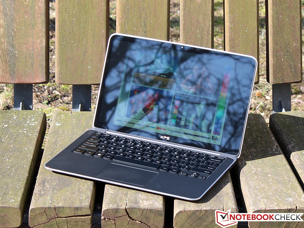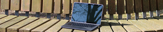 Die ersten schönen Tage des Jahres haben uns mit dem XPS 13 aus dem Haus gelockt, um die Außentauglichkeit des Notebooks zu untersuchen. Das sonnige Wetter hat es dem Kandidaten von Dell dabei nicht leicht gemacht, von deutlichen Reflexionen auf der verspiegelten Displayoberfläche blieben wir nicht verschont. Dank der kräftigen LED-Hintergrundbeleuchtung lässt sich der Bildinhalt dennoch erkennen, auch wenn eine matte Anzeige ein noch besseres Abschneiden ermöglicht hätte. Wir empfehlen den Käufern des Gerätes darum, direktes Sonnenlicht zu meiden und sich einen Platz im Schatten zu suchen.
