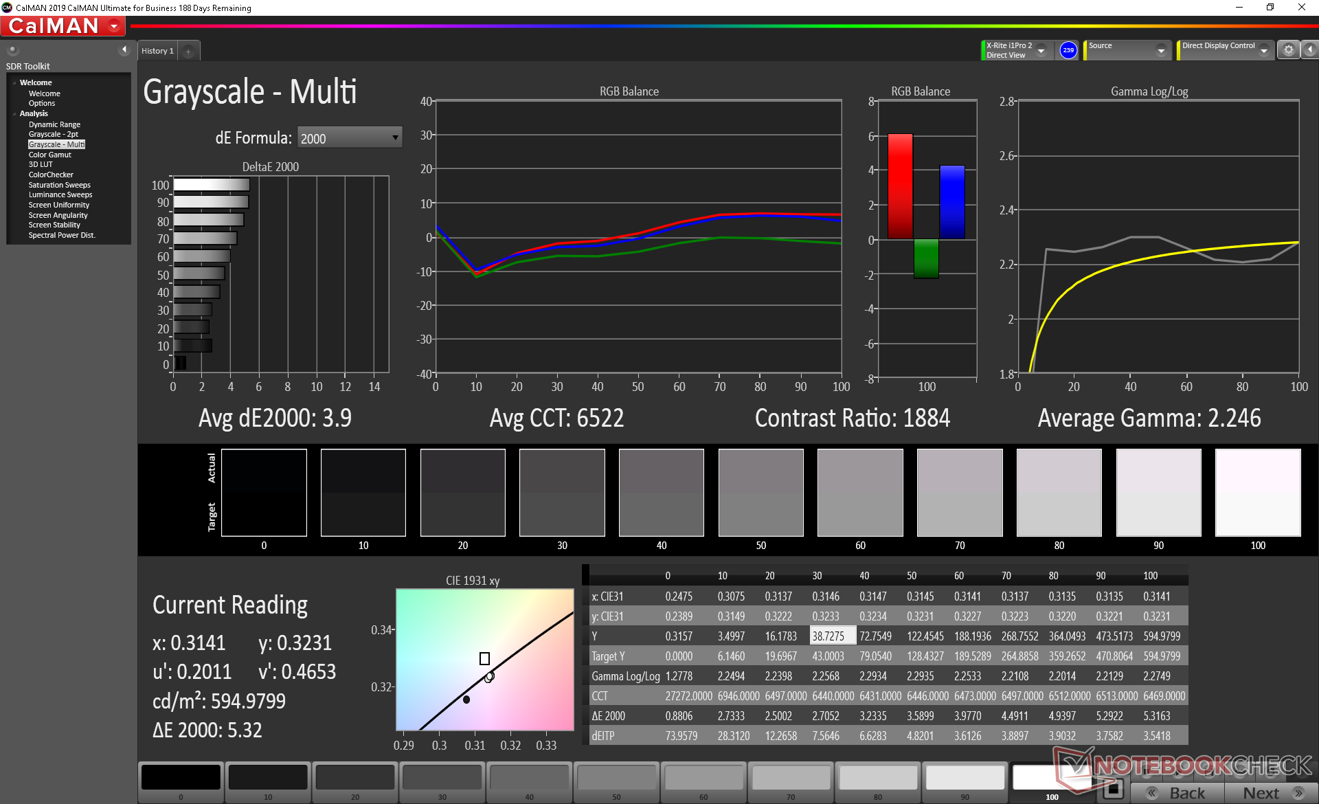 ΔE Greyscale Calman: 3.9 | ∀{0.09-98 Ø5}