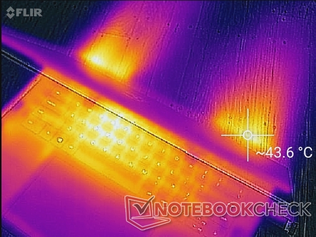 (+) Die Handballen und der Touchpad-Bereich sind mit gemessenen 28.4 °C kühler als die typische Hauttemperatur und fühlen sich dadurch kühl an.