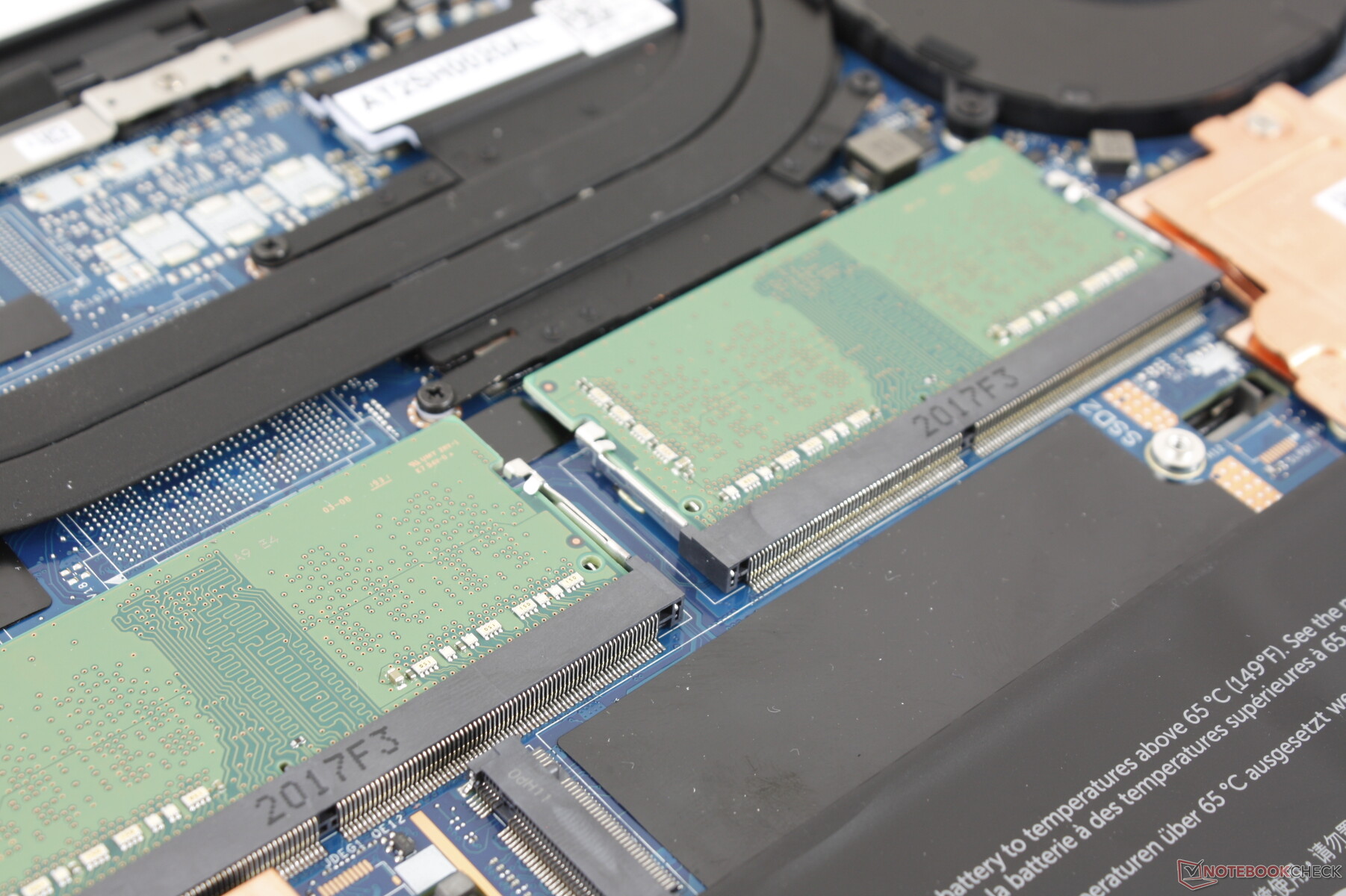 Im Inneren hat man direkten Zugang zu den Speicherschächten, den RAM-Modulen und dem Akku.
