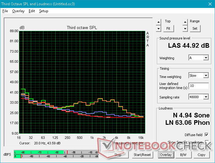 (+) | Die Lautsprecher können relativ laut spielen (83.6 dB)