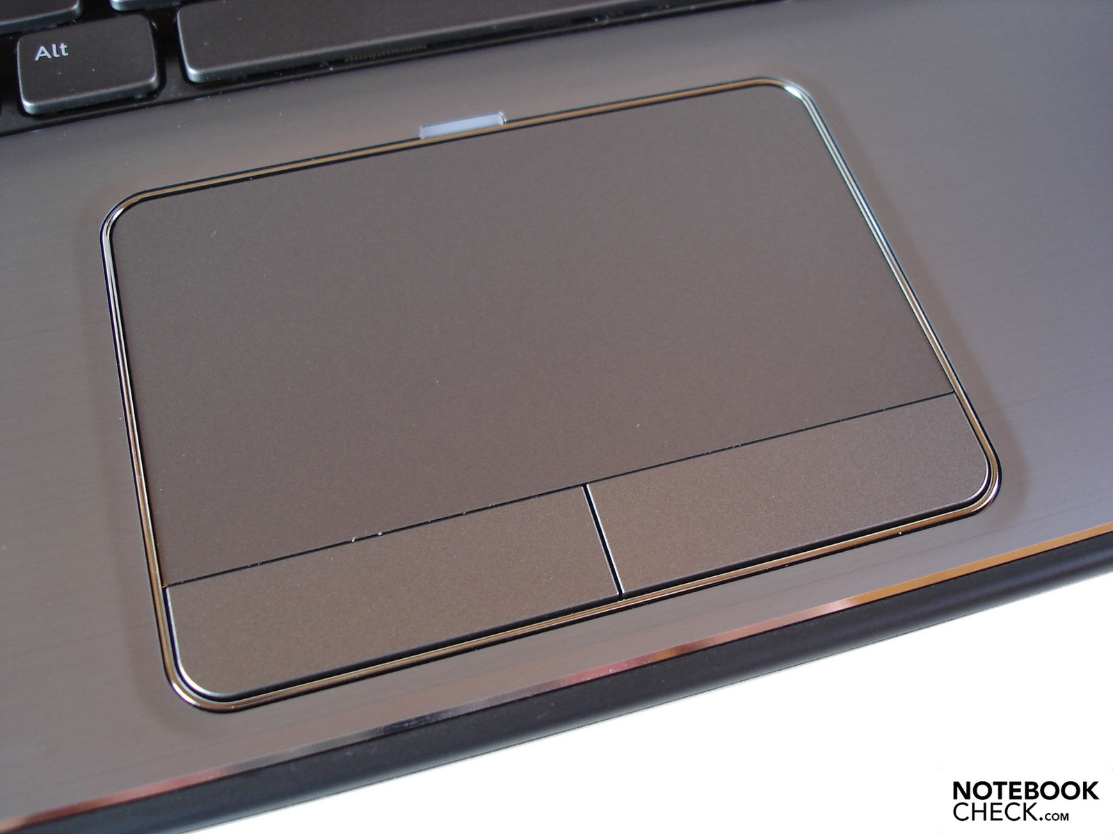 Im Gegensatz zur Tastatur lieferte das Touchpad eine ausgezeichnete Vorstellung ab. Als erstes sticht dem Nutzer wohl die schiere Größe ins Auge, 100 x 56 Millimeter sind überdurchschnittlich viel. Die angenehm glatte Oberfläche verfügt über gute Gleiteigenschaften, der Umgang mit dem Touchpad erweist sich als äußerst komfortabel. Dieser Umstand ist auch auf die hohe Präzision und die unterstützen Gesten (Drehen, Zoomen & Scrollen) zurückzuführen, eine Mehrfingereingabe darf natürlich nicht fehlen. Einzig die Touchpadtasten wollten uns nicht zusagen, wabbelig wäre hier das passende Attribut. Um das Touchpad im Spielebetrieb nicht aus Versehen auszulösen, hilft übrigens die optionale Deaktivierung.