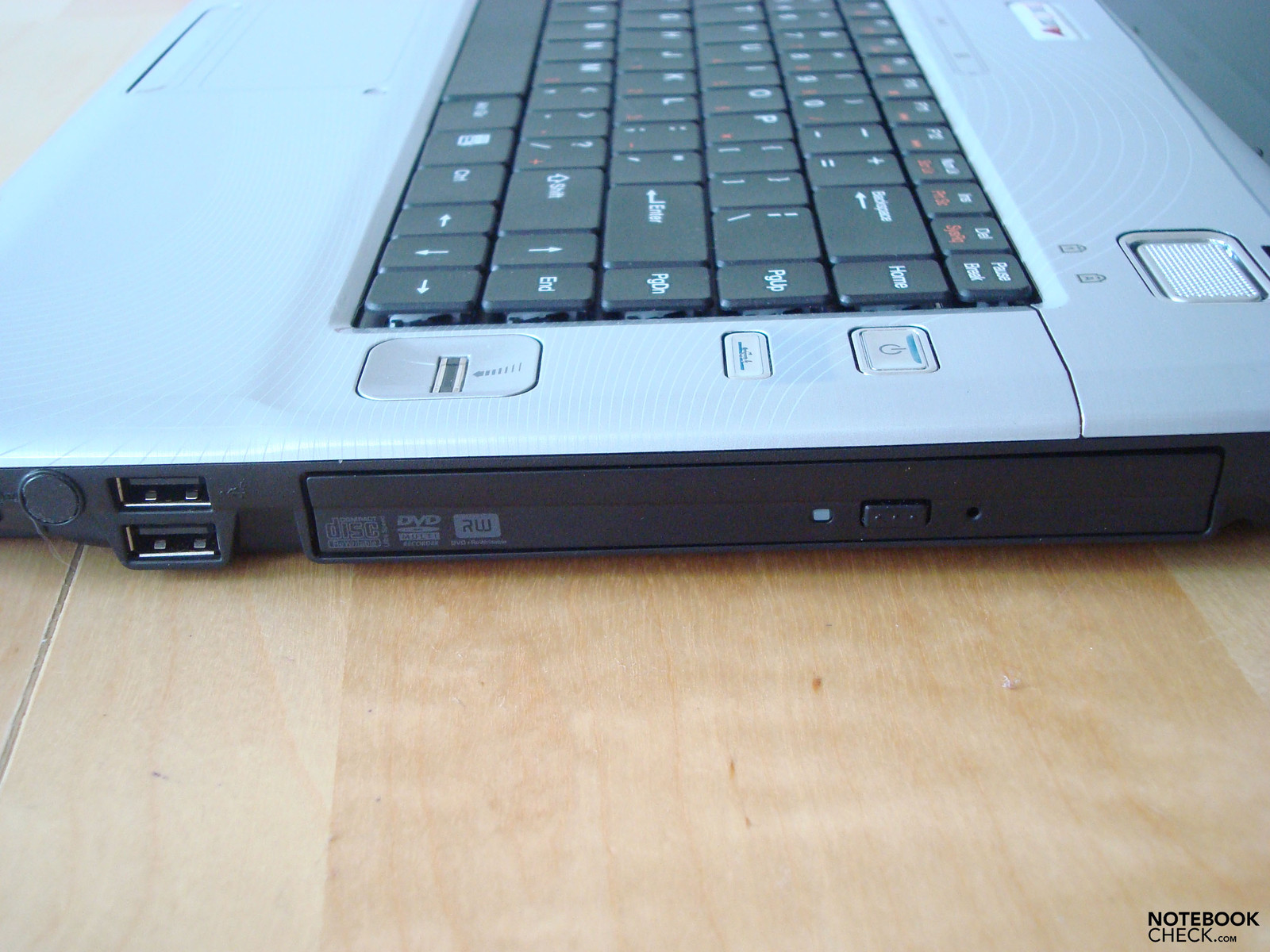 Die rechte Seite wird von drei weiteren USB Anschlüssen, dem DVD Laufwerk und dem Anschluss für die Stromversorgung geziert. Damit wäre ein möglicher Kritikpunkt an der Anschlussausstattung gegeben, da alle vier USB Ports an den Seitenkanten jeweils in den vorderen Bereichen angeboten werden, und man sich so auf jeden Fall mit Kabeln neben dem Gerät arrangieren muss.