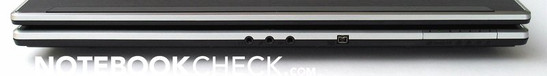 An der Vorderkante bietet das Notebook etwa die 3.5mm Audio Ports, also einen Kopfhörer, einen Mikrofon und einen LineIn Anschluss. Auch ein Firewire 1394 Port ist hier zu finden.
