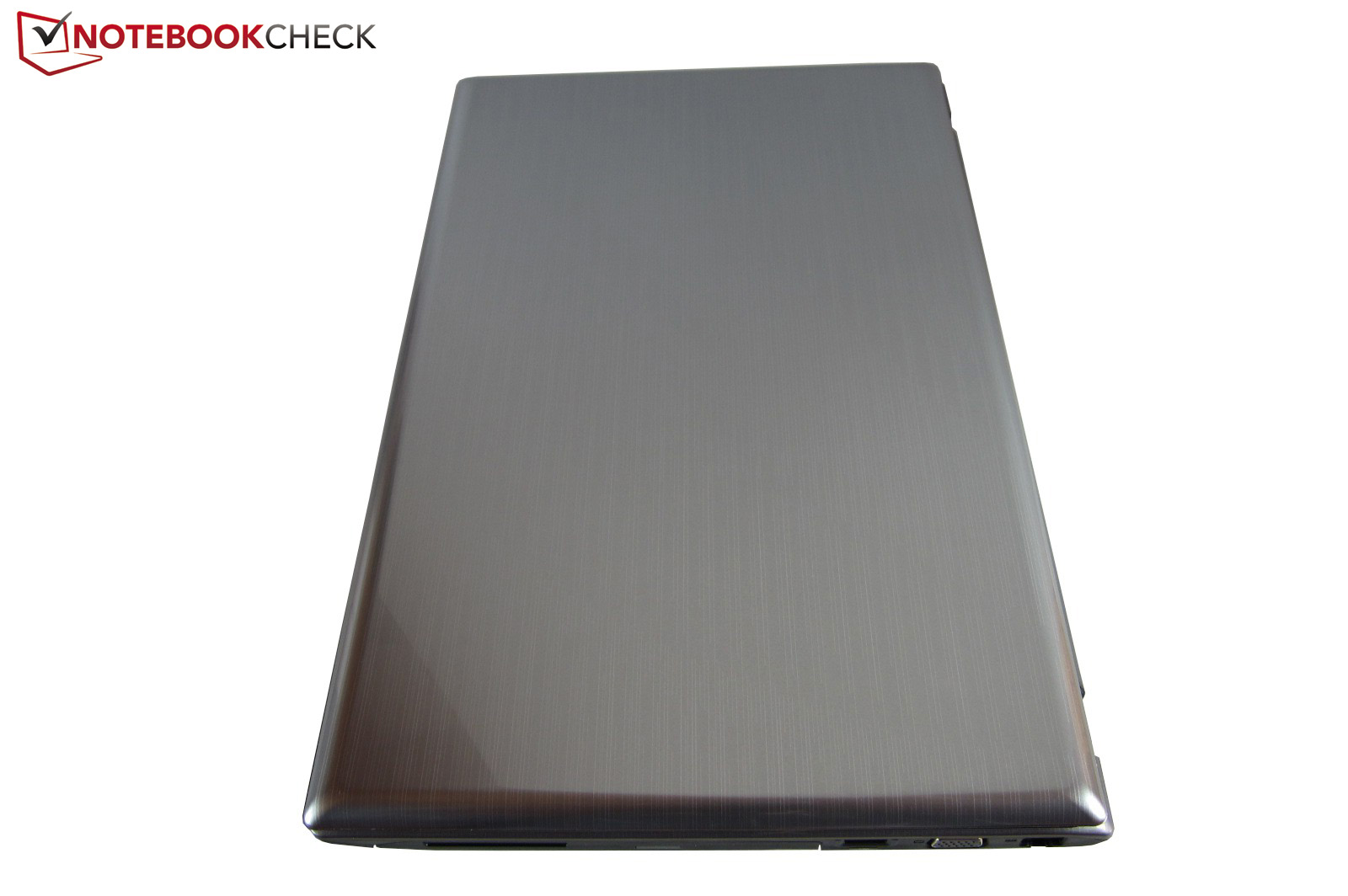 Optisch macht der 15-Zöller hingegen einen recht gelungenen Eindruck. Einerseits sorgen die hellen und dunklen Oberflächen für einen hübschen Kontrast. Andererseits entdeckt man bei genauerem Hinsehen ein feines Linienmuster. Formgebung, Abmessungen (383 x 250 x 38 mm) und Gewicht (~2.6 kg) sind derweil nicht sonderlich spektakulär.