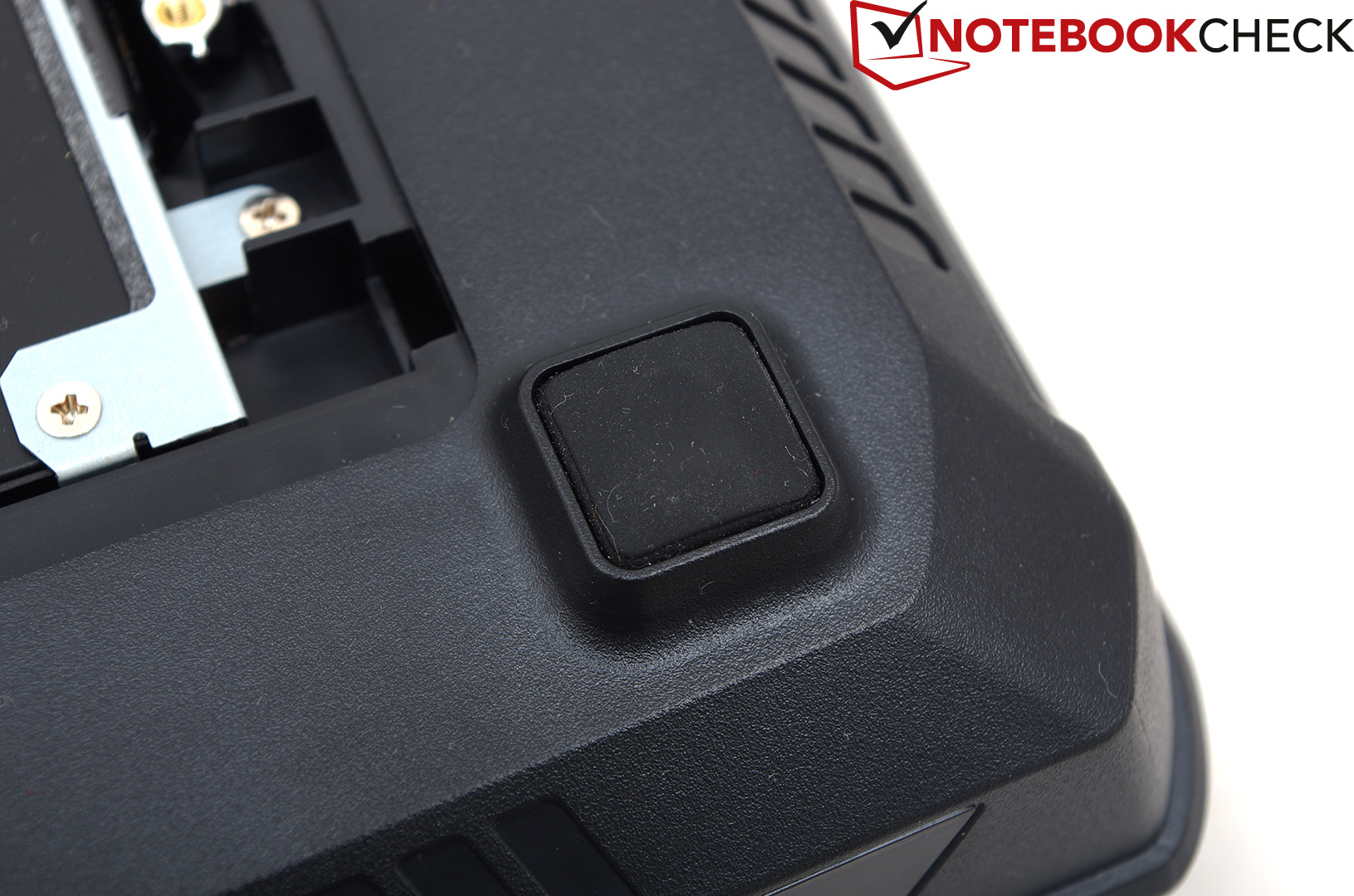 Die mächtige und stabile Konstruktion wirkt sich jedoch positiv auf die Steifheit des Chassis aus. Auch wenn das Notebook nur schwer mit einer Hand anzuheben ist, biegt es sich an keiner Stelle markant durch. Lediglich der Tastatur-Bereich gibt beim Eindrücken spürbar nach.
