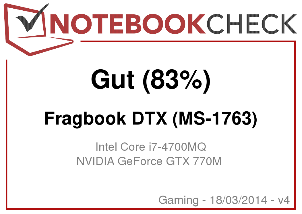 Unterstützt wird die CPU von einer Nvidia Geforce GTX 770M Grafikkarte, die sich in der High-End Klasse niederlässt. Zusammen mit 8 GByte DDR3-Arbeitsspeicher und einer 120 GByte großen SSD erreicht unser Testsample einen Preis von rund 1.500 Euro. Damit Filme und Spiele auch adäquat zur Geltung kommen, wurde das Fragbook DTX mit einem matten und 17,3 Zoll großen Full-HD-Display ausgestattet.