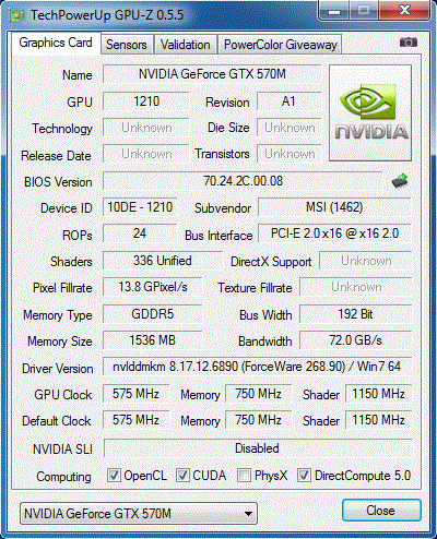 Grafikkarte: Nvidia GeForce GTX 570M
