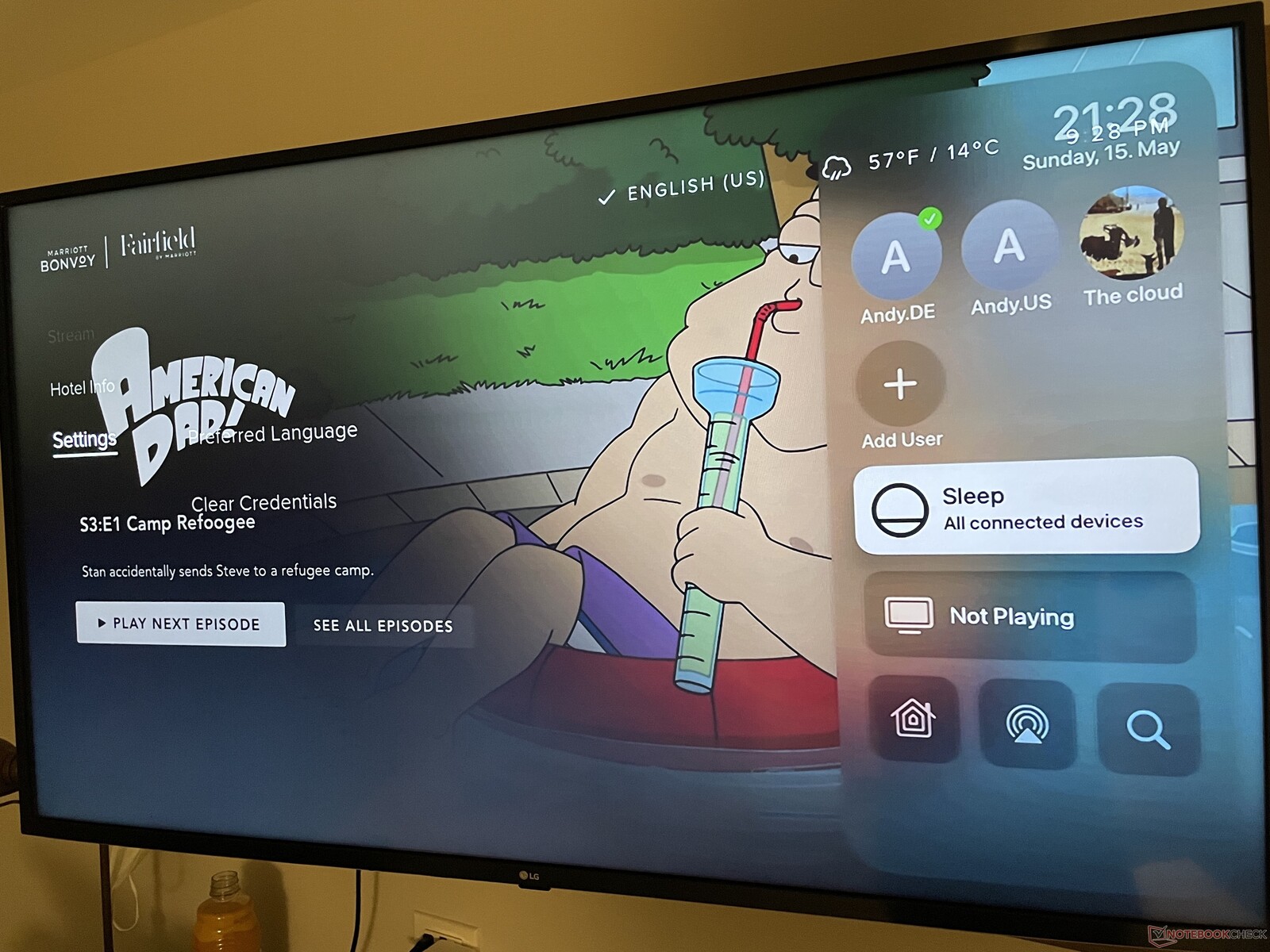 Das letzte Hotel dieses Tests waren die Fairfield Inn & Suites in Seattle. Hier wurde eine Befürchtung wahr, die wir schon im vierten Hotel hatten: Das Apple TV hat sich offenbar innerlich verknotet. Die Problematik mit dem Homepod Mini blieb zunächst bestehen.