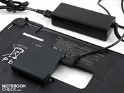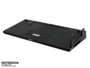 Die Docking-Lösung VGP-PRS20 (zirka 129 Euro) nutzt ein identisches Netzteil wie das Notebook (darf ruhig verwechselt werden). Da der Nutzer zwei dieser Art besitzt, braucht das Netzteil der Docking bei einer Reise nicht abgesteckt werden. Akku inklusive Slice werden von der Docking-Station geladen. Mit einem Schieber auf der rechten Seite wird der Port bei Slice-Aufsatz angehoben (Extended Battery).