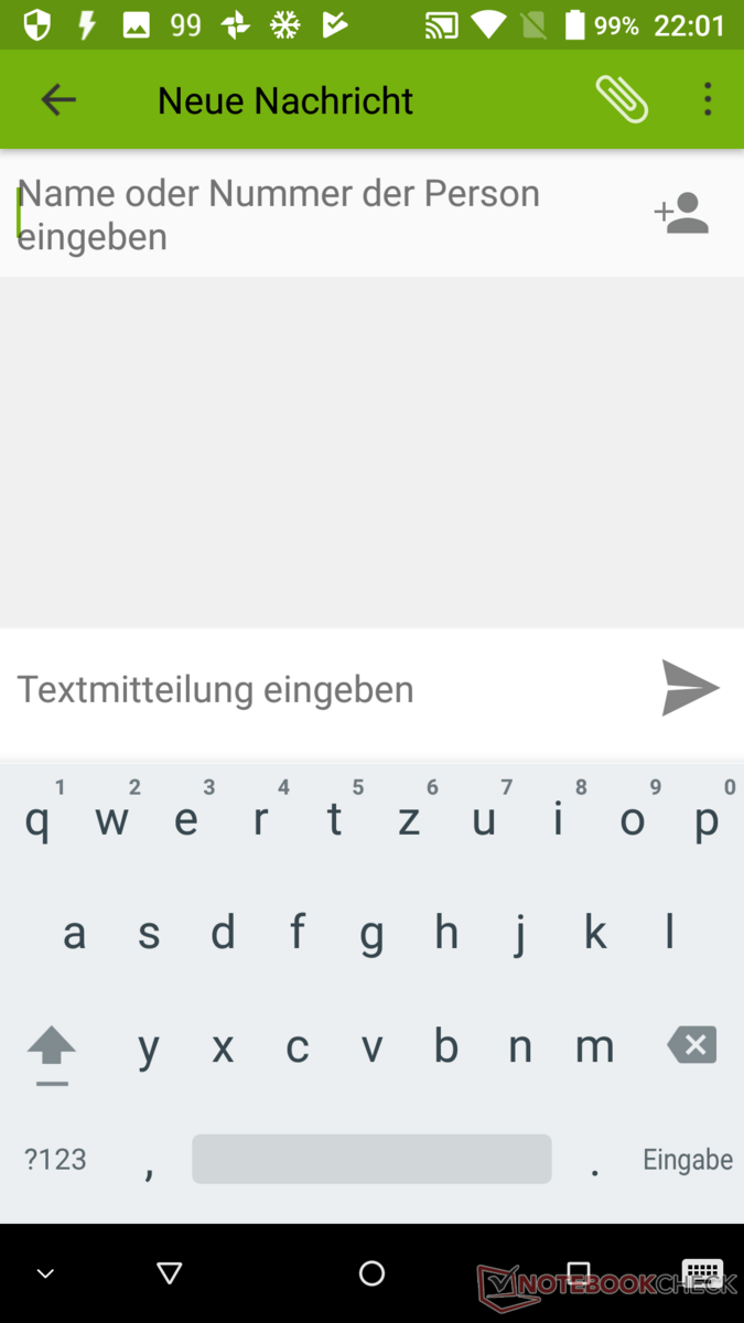 Die virtuelle Tastatur benutzt das Standardlayout von Google.
